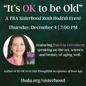 Patricia Greenberg will be speaking at our Rosh Hodesh gathering on the art, science, and beauty of aging well.  She bridges her culinary background, fitness expertise, and [...]